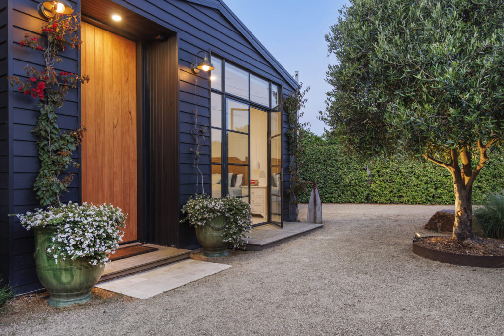 By the pool, the self-contained two-bedroom, two-bathroom guest house offers exceptional flexibility as an additional entertainment zone and/or accommodation, with two separate zones, a central premium kitchenette and living zone with a wood heater, and a European laundry. Additional features include zoned reverse-cycle heating and cooling, a large laundry with external access, imported Portuguese hardware, and a wealth of storage. Recycled timber from the Rye Pier shapes the garden alongside corten steel, natives and established trees, supported by full irrigation, garden lighting, water tanks, Barn Lights Australia fixtures and secure gated parking.